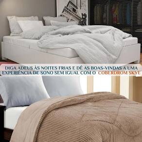 Sabe aquele momento de se jogar na cama e sentir o cobertor te abraçando É isso que você vai sentir com o cobredom skye. Ele esquenta rápido, deixa a cama encorpada e com charme, e ainda é fácil de cuidar, porque pode ir na máquina e é resistente, feito para durar.