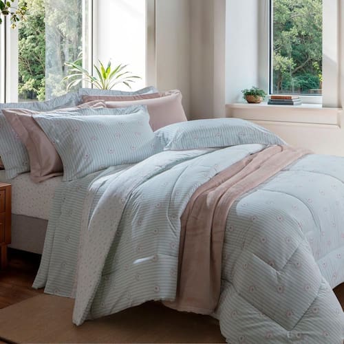 O cobreleito Kacyumara Pivone é a peça que une leveza, aconchego e sofisticação. Produzido com 200 fios de puro algodão egípcio, oferece um toque suave e macio, garantindo conforto durante todas as estações do ano. Sua estampa em estilo Liberty sobre listras confere delicadeza e um visual romântico, perfeito para transformar o ambiente de descanso em um verdadeiro refúgio de charme e elegância.