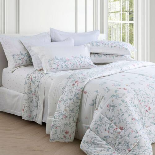 Produzido em percal 300 fios de algodão egípcio, garante toque acetinado, frescor e maciez duradoura. O cobreleito é leve, versátil e perfeito para todas as estações, mantendo a beleza impecável da sua cama posta.