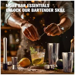 Material de aço inoxidável premium O conjunto coqueteleira é feito de aço inoxidável 304 de alta qualidade. Inofensivo para a saúde, é durável, à prova de vazamentos, leve e não riscável, à prova de ferrugem e resistente a arranhões, não deformado e fácil de limpar. O conjunto de ferramentas para cocktail shaker é muito fácil de limpar manualmente com água morna e sabão e manter seu brilho com facilidade, adicionando arte moderna ao seu bar doméstico.