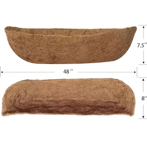 -?Tamanho do forro?Cada forro de coco tem 48 polegadas de comprimento, 8 polegadas de largura e 7,5 polegadas de altura. Nossos forros de coco já têm seu próprio formato de hemisfério e podem caber bem em sua cesta suspensa em forma de hemisfério, desde que você escolha o tamanho certo.