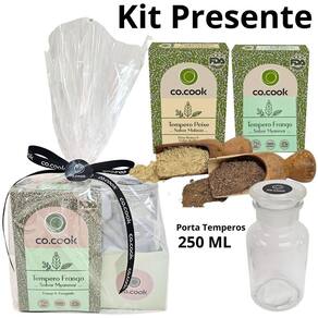Cocook Kit Trio Presente Tempero Frango Peixe Porta Tempero 250ml Cocook Kit Trio Presente - O Toque Perfeito para Realçar Seus Pratos O cocook Kit Trio Presente é ideal para quem valoriza praticidade e sabor na cozinha. Combinando dois temperos exclusivos e um porta-tempero elegante, este kit é perfeito para aprimorar suas receitas e trazer mais sofisticação ao seu dia a dia. Inclui: