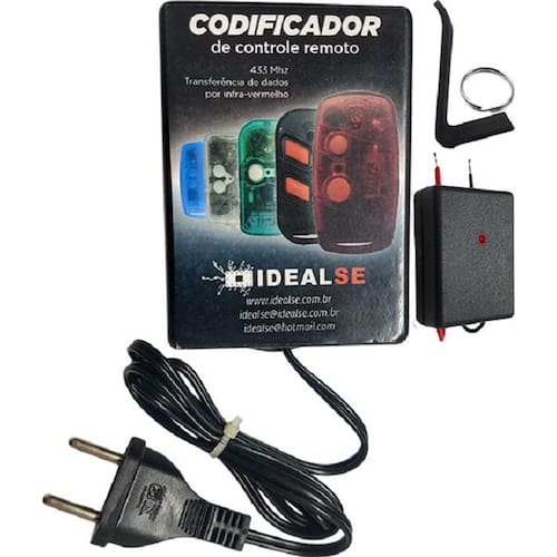Especificações técnicas Codificador modelo bivolt 110/220 + controle ideal regravável modelo 1003 clipe + argola 12 meses a partir data do recebimento. Acompanha 1 manual, 1 banner, 1 cd com vídeos demonstrativos explicando passo a passo todo o processo de cópia e verificação. Vantagens do produto: Nosso codificador/copiador realiza a cópia de todos os controles na frequência 433 mhz do modelo code learning , compatível com controles que utilizam chip ht. Compatível com portões elétrico, cercas elétrica, alarmes automotivo, alarmes residencial, porta elétrica de segurança, etc; Com este sistema você pode produzir uma cópia de um controle code learning como se faz uma cópia de chave; O método de clonagem de controle é muito simples, o clone do controle é feito em menos de 1 minuto; O cliente leva o clone do controle dele na hora clonagem instantânea ; É possível armazenar 2 controles diferentes, um em cada botão do controle ideal; Você não necessita ir ao domicílio do cliente, a cópia já sai funcionando igual a ; Não ocupa espaço na memória do do portão, podendo codificar número ilimitado de controles no mesmo ; É regravável, podendo ser ilimitadas vezes. Produto indicado para: Instaladores de portões automáticos e alarmes; Chaveiros; Lojas de produtos eletrônicos, elétricos e similares. Não clona rossi, peccinin e linear