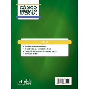 SUPERLANÇAMENTO: Código Tributário Nacional – Lei nº 5.172, de 25 de outubro de 1966 Atualizado até a Lei Complementar nº 194, de 23 de junho de 2022, e até o DOU de 24 de fevereiro de 2023 Normas complementares Resoluções do Senado Federal Súmulas e Súmulas Vinculantes do STF Súmulas do STJ Índice remissivo Notas remissivas