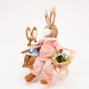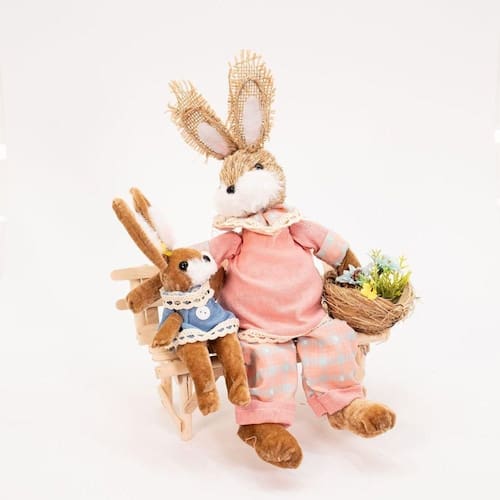 Deixe sua casa para a páscoa mais decorada com esta linda Coelhinha e seu Filhote sentados em um Banquinho. ;