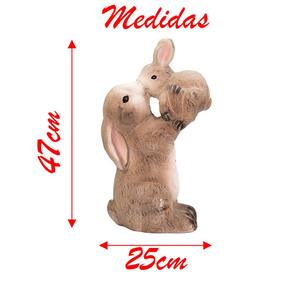 Coelha de Páscoa Decoração Coelhinha com Filhote Cerâmica 47cm -