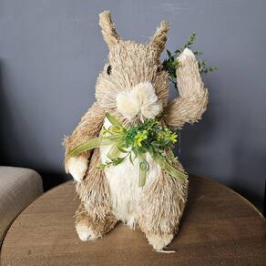 Adicione um toque rústico e acolhedor à sua Páscoa com o Coelho de Páscoa de Palha com Cenoura de Lâmina de Madeira. Com um design encantador e sofisticado, essa peça de decoração traz a beleza do artesanal e a alegria da festa para o seu lar, criando uma atmosfera aconchegante e festiva.