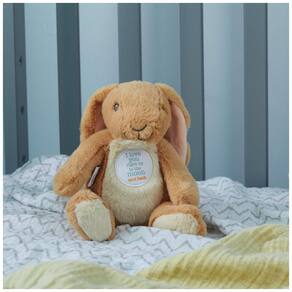 Este é um saco de feijão em formato de coelhinho de pelúcia da marca Adivinhe o quanto eu te amo. Com aproximadamente 22 centímetros de altura, ele é perfeito para abraçar, aconchegar e até mesmo decorar o berçário. O brinquedo é supermacio, fofo e cheio de detalhes, sendo um amigo reconfortante para bebês, crianças pequenas e crianças de todas as idades. A mensagem icônica da história, eu te amo até a lua e de volta, está bordada na barriga do brinquedo. É lavável na máquina e pode ser um ótimo presente para votos de felicidades, aniversários e muito mais Além disso, animais de pelúcia são divertidos de colecionar e trocar e são ótimas lembranças para crianças, adolescentes e adultos.