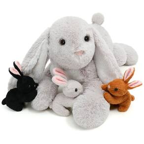 A coleção Cozy Bunny Family é composta por adoráveis coelhinhos de pelúcia, feitos com material de alta qualidade que proporciona uma experiência macia e abraçável para crianças e adultos. O corpo recheado com toque suave e natureza fofinha torna os abraços ainda mais doces ou uma adição aconchegante a qualquer berçário.