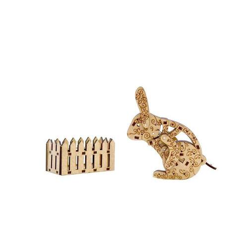 Para quem gosta de um passa tempo divertido, um pequeno quebra-cabeças mecânico formado por diversas peças em madeira de 3mm, este belo coelho é o presente ideal para animar as tardes e os finais de semanas em familia. Pode ser utilizado tanto como um enfeite comum, cmo uma decoração de datas festivas De fácil montagem, o coelho mecânico simula a movimentaçao de abertura das orelhas, patas e rabinho, dando uma toque mais realista aos movimentos do quebra-cabeças. Acompanha também uma bela cestinha com um cercadinho para colocar os ovinhos do coelho.