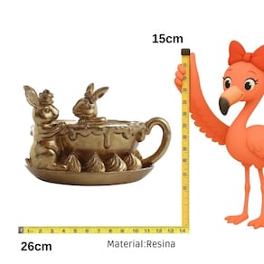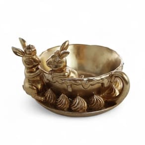 ATENCAOAs cores dos produtos podem sofrer variacoes em funcao das caracteristicas do monitor OBSERVACAO IMPORTANTEOs produtos podem sofrer alteracoes no design pelo fabricanteTodos os nossos produtos sao testados e filmados antes do envioConteudo da embalagem 01 unidade na embalagem COELHO DE PASCOA GOLDY DOURADO NA XICARA EM RESINA 15CM 01 UNIDADE 1094431 O Coelho de Pascoa Goldy Dourado na Xicara em Resina e uma peca charmosa e sofisticada que une delicadeza e elegancia a decoracao pascal. Com acabamento dourado e composicao criativa ele transmite leveza requinte e um toque ludico ao ambiente. A xicara complementa o visual trazendo personalidade e originalidade a peca tornando se um destaque em mesas aparadores prateleiras ou nichos decorativos. Ideal para quem busca uma decoracao de Pascoa diferenciada com brilho e suavidade nos detalhes. Uma escolha perfeita para compor ambientes elegantes afetivos e cheios de charme. MEDIDAS APROXIMADAS15 cmInformacao fornecida pelo fabricante OBSERVACOESOs objetos que ambientam as imagens nao acompanham o produtoProdutos e cores podem variar daqueles representados na embalagem