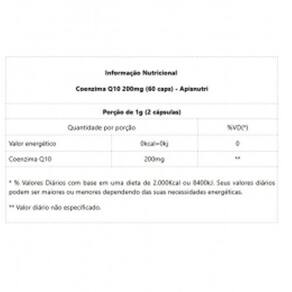 Coenzima Q10 200mg 60 caps - Padrão: Único Coenzima Q10 60 caps A Coenzima Q10 é encontrada em todas as células do corpo e está envolvida em diversos processos metabólicos. É essencial para o metabolismo energético e como proteção antioxidante para as células. Ela é um nutriente com função antioxidante, eficaz no combate direto de radicais livres. Além disso, esse nutriente também é responsável pela produção de ATP célula energética , uma molécula que fornece energia ao nosso corpo durante qualquer atividade física ou processo metabólico. Na versão da Bionutrir, a Coenzima Q10 é um suplemento em cápsulas, formulado com ingredientes 100% naturais, mantendo assim a sua qualidade. benefícios: - Antioxidante potente;- Ajuda a atenuar a fadiga física;- Vasodilatação na corrente sanguínea;- Melhora o índice glicêmico;- Auxilia no desempenho físico e a recuperação muscular. Marca: Não Informado