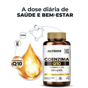 Descrição:Suplemento em cápsula à base de coenzima Q10 combinada à vitamina E. Essa enzima é produzida no nosso corpo e auxilia na produção de energia celular.Também conhecida como CoQ10, vitamina Q10, ubidecarenona ou ubiquinona, está ligada em processos de produção de energia. Além disso, possui diversos outros benefícios para nossa saúde.Quando consumirAlguns fatores como idade, má alimentação e exercícios extenuantes podem interferir na produção da coenzima Q10. Por isso, sua suplementação é importante.Dessa forma, o produto Coenzima Q10 é ideal para aumentar o potencial antioxidante intracelular e aumentar a biogênese mitocondrial para a produção de energia.Benefícios:- Com TCM: melhor absorção;- 200 mg de Coenzima Q10 por cápsula;- Com Vitamina E: sinergia antioxidante.Ingredientes:Coenzima Q10, DL Alfa Tocoferol. Veículo: óleo de triglicerídeos de cadeia média TCM e cápsula gelatina, água purificada, umectante glicerina e corante óxido de ferro amarelo . NÃO CONTÉM GLUTÉN.Sugestão de uso:Ingerir 1 cápsula ao dia ou conforme orientação do médico ou nutricionista.Conservação:Conservar o produto bem fechado, em local fresco, seco e ao abrigo de luz. Após aberto, consumir em até 30 dias.
