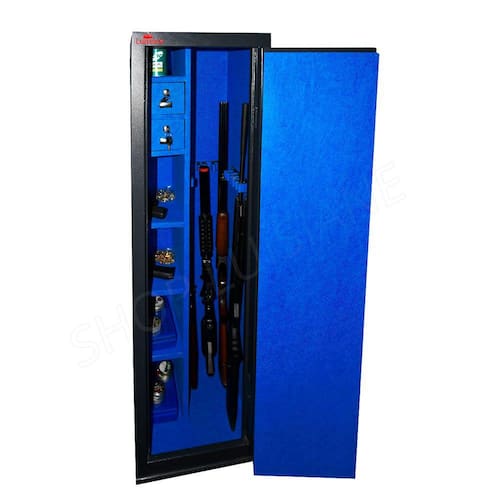 Estrutura do cofre: Corpo fabricado em chapa de 1mm e porta em chapa 2mm. Porta com 04 travas maciças de 18mm de diâmetro. Pintura em esmalte sintético. Gavetas com fechaduras. O cofre já vai com 04 furos na parte de trás para fixação na parede.