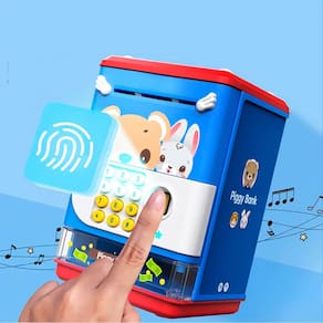 1x Cofrinho Digital Puxa Notas com Senha [Azul] 1x Cartela de Adesivos Marca: Opapro