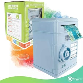 Cofre Eletrônico Digital Infantil Puxa Nota Azul Claro Xr011