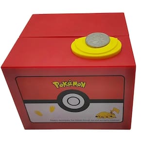 Excelente opção para decorar o ambiente! Cofre automático com um Pikachu Pokémon muito meigo escondido na caixa. Você coloca uma moeda sobre o pratinho e o Pikachu sai da caixa e rouba a moeda. Ótima e divertida maneira de ensinar as crianças a poupar dinheiro e juntar moedas. Fica lindo e chama muito a atenção sobre os balcões de bares, padarias, lojas, ONGs, escritórios, quermesses, secretarias de escola e qualquer outro local que recolha doações ou caixinha para os funcionários. Também estimula a doação para artistas e performers de rua. Um lindo presente para adultos e crianças. Para tirar as moedas é só abrir o compartimento embaixo. Funciona com duas pilhas pequenas (AA).
