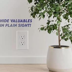 Design de tomada fake camufla o cofre e reduz a atenção de terceiros.