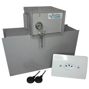 Cofre tomada tam. Médio para embutir em parede; Construído em aço sólido; Sistema de fechamento com chave; Gaveta interna com chave cilíndrica ( tipo yale ) e revestimento; Fundo falso com amplo espaço de armazenagem; A parte externa, aparência de uma tomada comum; Pintura eletrostática a pó de alta resistência ( epóxi ); Assistência técnica / serviço de reposição de peças permanente; Produto 100% nacional.