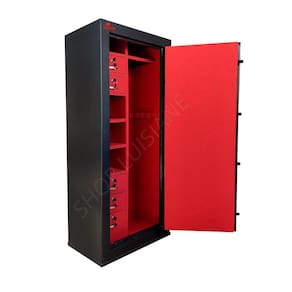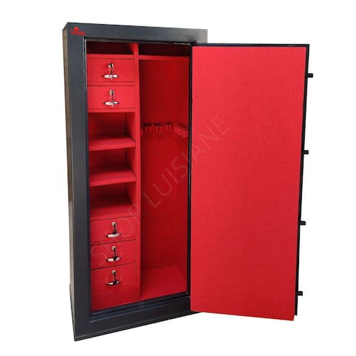 Estrutura do cofre: Corpo fabricado em chapa de 1,2mm e porta em chapa 2mm. Porta com 04 travas maciças de 18mm de diâmetro. Pintura em esmalte sintético. Gavetas com fechaduras. O cofre já vai com 04 furos na parte de trás para fixação na parede.