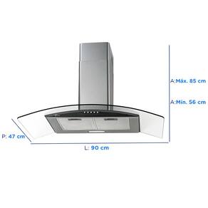 CARACTERISTICAS - Vidro temperado - Velocidades: 3 niveis - Acabamento em aco inox 430 escovado e vidro preto - Acompanha filtro de aluminio -lavavel manualmente ou em lavadora de loucas- - Acompanha filtro de carvao ativado - Funcao exaustor - Funcao depurador - Controle eletromecanico - Lampada LED 1 X 2,5W