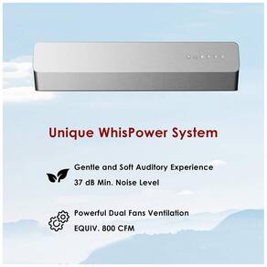 Recursos e tecnologias: Motores AC duplos, perfil slim sob gabinete, tecnologia aerodinâmica de alta pressão estática, sistema de gerenciamento de ar, painel com botões de acionamento suave, 3 velocidades, placas de captura com coletores de óleo integrados, iluminação LED de alta intensidade, tecnologia de ajuste de CFM para atendimento a normas locais de vazão