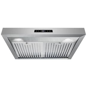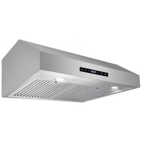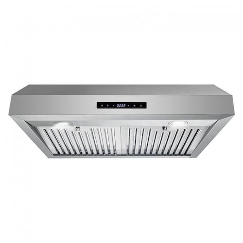 Esta coifa de embutir sob gabinete de 76 cm da linha Haven foi projetada para exaustão mecânica em cozinhas residenciais, com estrutura em aço inox 430 escovado e corpo retangular compacto. A instalação é feita sob armário superior, com duto superior circular de 15,2 cm voltado para exaustão externa do ar para fora do ambiente.