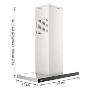 Transforme a sua cozinha em um ambiente mais limpo, agradavel e sofisticado com a Coifa Touch Control da Oster. Com seu design elegante e moderno, em metal e vidro na cor inox, ela adiciona um toque de requinte ao seu espaco, enquanto trabalha silenciosamente para eliminar odores e fumaca. Com dimensoes de 62,5-111x90x50 cm e peso de 23,70 Kg, a coifa e robusta, porem compacta, adequando-se perfeitamente a cozinhas de diversos tamanhos.