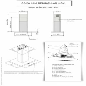 Altura de instalação recomendada: mínimo 65 cm - máximo 75 cm (entre fogão e coifa)