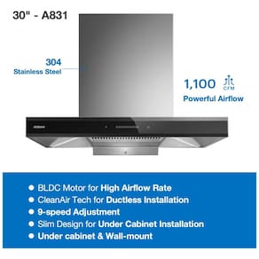 Uso indicado: Cozinha residencial com instalação em parede sobre fogão de 30 polegadas, com possibilidade de exaustão por duto ou recirculação com filtro de carvão ativado