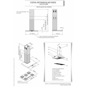 Observação importante, sempre observar a largura do seu fogão, para que a largura da coifa seja sempre um pouco maior que o fogão cooktop.