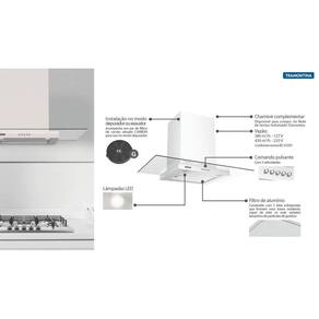 INFORMAÇÕES GERAIS Instalação: Parede Tensão: Material: Aço Inox Frequência: 60 Hz Potência Máxima: 123 W Comando: Pulsante Velocidades: 3 Nivel de Ruído: 60 db A - cfe. Norma IEC 60704 Vazão: 430 m3/hora - cfe. Norma IEC 61591 Iluminação: 2 lâmpadas leds 2 x 1,5 W Filtro Metálico Lavável: 1 Filtro de Carvão: 2 - Modelo Carbon G Tubo Flexível: Não acompanha Acessórios Inclusos: - Kit para instalação - 2 Filtros de carvão ativado Carbon G RECOMENDAÇÕES DE USO Recomenda-se que a instalação do depurador seja feita pela Rede de Serviço Autorizado Tramontina. Instalação por conta do consumidor. Uso doméstico. A altura entre o cooktop e o depurador deve ser de no mínimo 650 mm e no máximo 750 mm. Acompanha gabarito para auxiliar na instalação. O filtro metálico deverá ser lavado pelo menos uma vez por semana, quando em condições normais de uso, ou conforme necessidade. Os filtros de carvão ativado que acompanham o depurador devem ser substituídos pelo menos a cada quatro meses, ou em períodos mais freqüentes dependendo do uso. ESPECIFICAÇÕES TÉCNICAS ALTURA 1,02 m LARGURA 47 cm COMPRIMENTO 90 cm PESO 14,7 kg Para produto unitário, estas especificações são referentes ao produto. Para conjunto, kit ou jogo, estas especificações são referentes à embalagem. CARACTERÍSTICAS DESENHO TÉCNICO Ean: 7894693764799