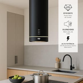 Mais do que um item funcional, essa coifa é uma peça de design que eleva o padrão da sua cozinha. Com formato redondo e acabamento all black em inox, ela une sofisticação e eficiência em um único produto.