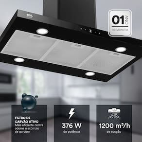 Alta Capacidade de Sucção: Com um fluxo de ar de até 1200 m/h, garante uma extração potente e eficaz, eliminando rapidamente odores e fumaça do ambiente.