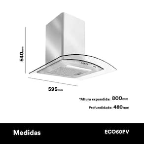 Coifa e Depurador de Parede Inox Com Vidro Curvo 60cm Eco60pv 220v - Eos B163422