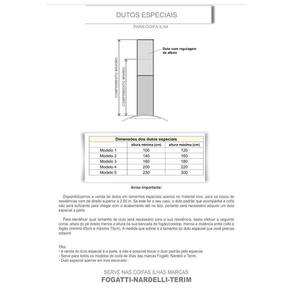 Para cozinhas com pé direito superior a 2,55 m. Temos disponível para venda à parte, alguns tamanhos de dutos especiais. Nas imagens do anúncio disponibilizamos a informação das medidas dos dutos especiais.