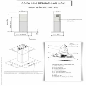 Para cozinhas com pé direito superior a 2,55 m. Temos disponível para venda à parte, alguns tamanhos de dutos especiais. Nas imagens do anúncio disponibilizamos a informação das medidas dos dutos especiais.