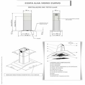 As dimensoes do produto podem sofrer uma pequena variacao de largura do vidro, de ate 7 sete milimetros. Por este motivo, quando a coifa for instalada de forma embutida em nichos, o fabricante recomenda que seja considerada uma folga de pelo menos 1cm em cada lado