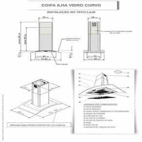 As dimensoes do produto podem sofrer uma pequena variacao de largura do vidro, de ate 7 sete milimetros. Por este motivo, quando a coifa for instalada de forma embutida em nichos, o fabricante recomenda que seja considerada uma folga de pelo menos 1 cm em cada lado