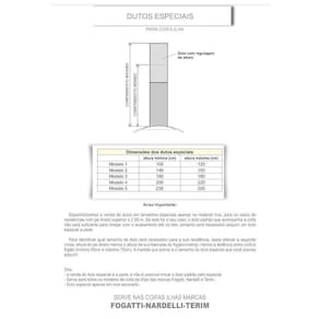 Para cozinhas com pé direito superior a 2,55 m. Temos disponível para venda à parte, alguns tamanhos de dutos especiais. Nas imagens do anúncio disponibilizamos a informação das medidas dos dutos especiais.