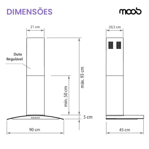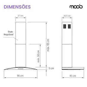 Características Gerais do Produto: - Capacidade de Sucção (m³/h): 550m³/h Modo Depurador, Exaustor; - Consumo: 0,142KWh; - Dimensão Externa Dos Dutos Superior/Inferior Com Regulagem de Altura (LxAxP em MM): Largura: 210 | Altura (Mínima: 500 - Máxima: 930) | Profundidade: 205; - Dimensões Base da Coifa (LxAxP em MM): 900x495x450; - Dimensões da Embalagem (LxAxP em MM): 400x550x980; - Filtro: Carvão Ativado; - Frequência: 60 Hz; - Função: Depurador; Exaustor; - Iluminação em Led: Sim; - Material da Coifa: Aço Inox Escovado; - Material do Filtro: Alumínio Metálico Lavável; - Painel de Comando: Easy Touch; - Potência do Motor: 140W; - Potência Lâmpada: 1W (x2); - Potência Total: 142W; - Ruído: 65 dB; - Velocidade de Sucção: 3 Velocidades;
