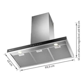 Esta coifa de parede de 90 cm em inox e ideal para fogoes de 5 e 6 bocas, equipada com inteligencia artificial para otimizar a eficiencia na succao de vapores e odores. Com uma potencia de 304 W e uma vazao de 800 m3/h, ela garante um ambiente mais limpo e agradavel na cozinha. Possui tres velocidades ajustaveis, permitindo controle total sobre a intensidade da succao. A coifa tem dimensoes de 44-82x89,5x45 cm e pesa 11,00 Kg, facilitando sua instalacao e adequacao ao espaco. O material em metal oferece durabilidade e a cor inox adiciona um toque de elegancia ao design. Inclui lampadas para melhorar a visibilidade e conta com filtro de carvao, que ajuda na purificacao do ar. A do fabricante e de 12 meses, assegurando tranquilidade e satisfacao no uso prolongado do produto. Marca: Não Informado