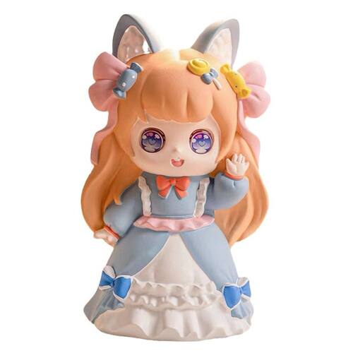 Tamanho: 13x12x22cm Material: PVC1. Estilo de anime extravagante Projetado com grandes olhos brilhantes, orelhas de gato e laços em tons pastel, esta figura adorável captura um visual de desenho animado sonhador que as crianças vão adorar. 2. PVC macio, mas resistente. Feito de PVC durável e macio ao toque, o banco resiste a quedas e manuseio brusco, tornando-o perfeito para crianças pequenas ou para uso diário. 3. Espaço de armazenamento generoso de 13 x 12 x 22 cm, ele contém uma grande quantidade de moedas ou notas dobradas, ideal para ensinar hábitos de economia de dinheiro ao longo do tempo. 4. Design de acesso conveniente Possui uma abertura inferior para facilitar a recuperação sem danificar o item, combinando fofura com praticidade. 5. Unissex para todas as idades Seja para aniversários, feriados ou prêmios escolares, esta peça encantadora é deliciosa para meninos, meninas ou colecionadores de kawaii.