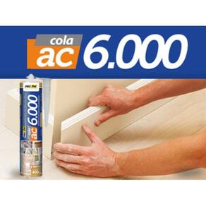 AC6000 é um adesivo de montagem, extra forte. Adere a uma grande variedade de substratos porosos e não porosos e é indicado para colagem de rodapés, guarnições, arandelas, peças decorativas, entre outros. Além de prático de usar, garante maior rapidez e reduz a sujeira, o barulho e outros transtornos que podem ocorrer com o uso de furadeiras ou martelos.