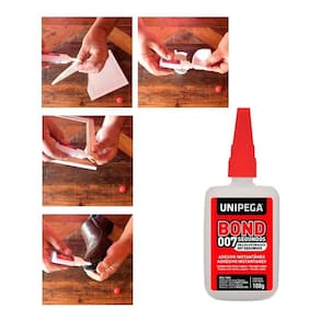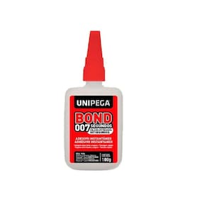 Bond 007 Segundos é um adesivo instantâneo a base de cianoacrilato multi colagens, pois cola com perfeição e instantaneamente a maioria dos materiais porosos e não porosos, como: borrachas, metais, plásticos, porcelanas, madeiras, lonas, couros e mais uma infinidade de substratos. Com rápida e forte adesão, é de fácil aplicação e excelente acabamento devido a sua transparência e aderência instantânea . CARACTERÍSTICAS: Colagem extra forte e segura Secagem rápida Forte adesão a diversos materiais Fácil aplicação Excelente acabamento INSTRUÇÃO DE MANUSEIO: Rosqueie a tampa até o fim com o frasco virado para cima. Remova as impurezas das peças a serem coladas com álcool. Aplique uma pequena quantidade de Bond 007 Segundos em uma das partes e junte-as firmemente até aderir o excesso de adesivo retarda a adesão . Após o uso, limpe o bico com papel e tampe. Não é recomendada a utilização em materiais como polipropileno, polietileno, poliestireno, silicone e tecidos com pouca espessura. É normal a superfície aquecer durante a secagem da cola. ARMAZENAMENTO: O produto deve ser mantido na embalagem e estocado em local fresco à temperatura de 5 a 25C, ao abrigo da luz solar direta e longe de fontes de calor. Mantenha fora do alcance de crianças e animais domésticos. Marca: Não Informado
