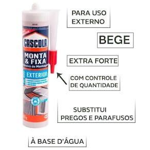 Indicado para adesão de alta resistência em susbtratos na construção, decoração, instalações em ambientes internos e externos e pequenos reparos. Cascola monta & fixa pl 600 adere a uma grande variedade de materiais porosos e não porosos e é indicado para colagem de rodapés, guarnições, arandelas, peças decorativas, entre outros. Prático de usar, cascola monta & fixa pl 600 garante maior rapidez e reduz a sujeira, o barulho e outros transtornos que podem ocorrer com o uso de furadeiras ou martelos.