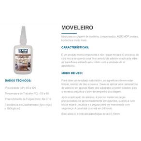 MODO DE USO: Deve-se aplicar uma camada fina de adesivo em apenas 1(um) dos substratos a serem colados, pois o excesso prejudica o bom desempenho da colagem.