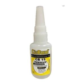 Cola Adesivo Instantâneo Cb 15 Ciabond 20g Anti Entupimento Adesivo Instantâneo CB 15 20g Ciabond, bico com pino de metal que evita o entupimento. O adesivo instantâneo CB 15, da CIABOND, faz parte da linha Cianoacrilato, que adere em segundos á temperatura ambiente, superfícies lisas e porosas, aderindo a maioria dos substratos, tais como: - Borracha - Madeira - Cerâmica - Vidro - Cortiça - Metais - Couro - Termoplástico