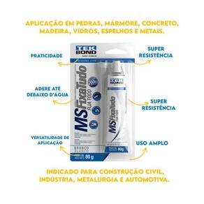 A Cola Adesivo MS Fixa Tudo Branco 80 Gramas TEKBOND é um adesivo híbrido super forte, desenvolvido para oferecer máxima resistência e versatilidade em diferentes superfícies. Com sua formulação inovadora, esta cola é indicada para madeira, metal, plástico, alvenaria, pedras, cerâmica, vidro, louça e espelhos, garantindo união segura e duradoura. Sua capacidade de fixação impressionante permite suportar até 200 quilos em apenas 10 centímetros quadrados, sendo ideal para aplicações domésticas, industriais e profissionais.