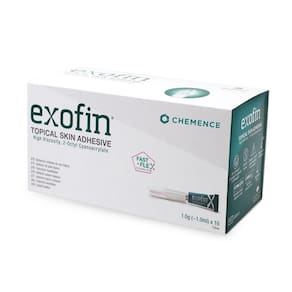 Modo de uso: Aplique o adesivo exofin sobre a incisão limpa e seca, espalhando-o com cuidado para garantir cobertura uniforme. Aguarde até que seque completamente. Em seguida, aplique as tiras steri-strip kelogel sobre a área tratada para reforçar o fechamento.